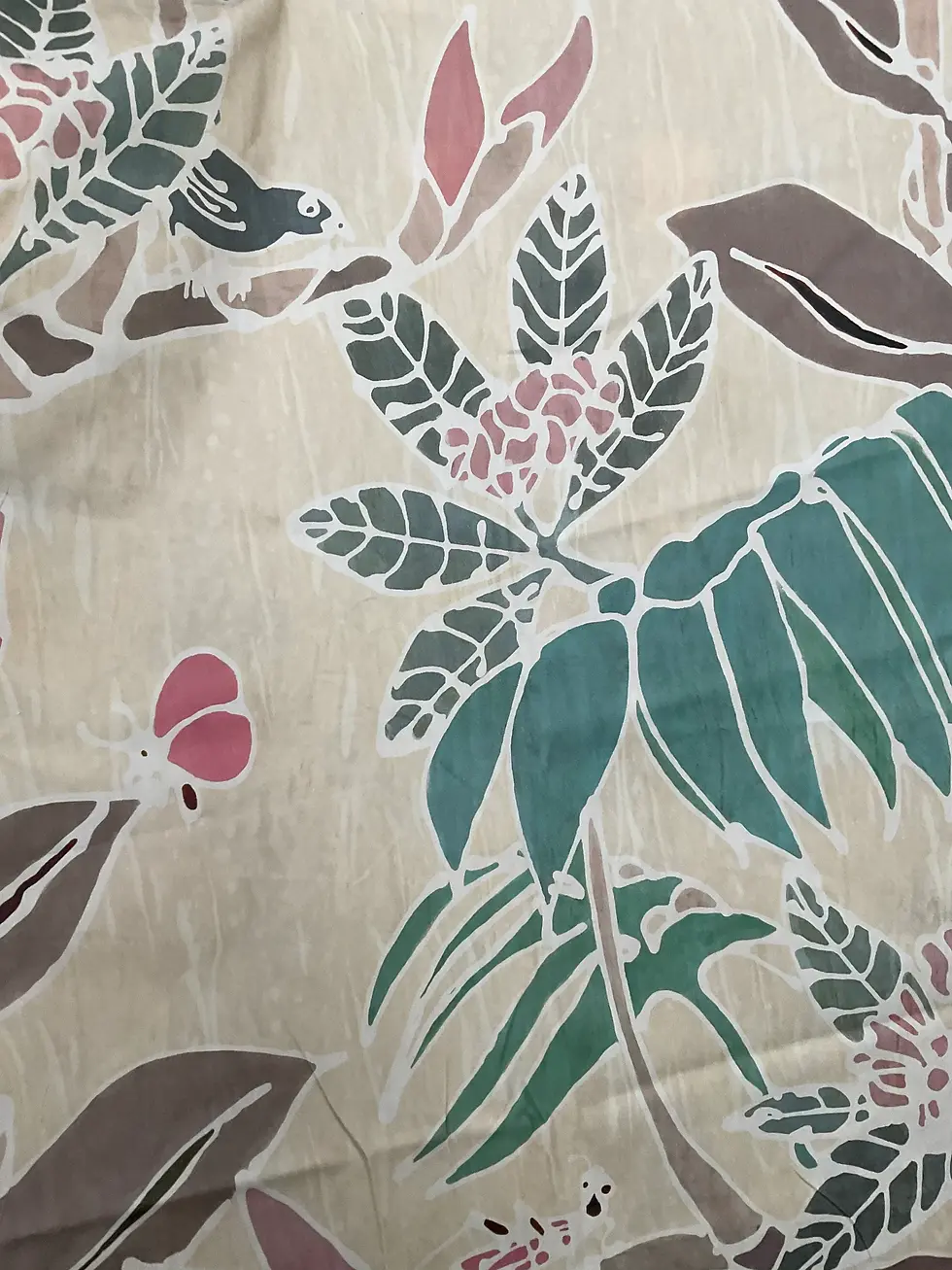 Multicolored Tropical on Tan Marbleized Cotton Sateen